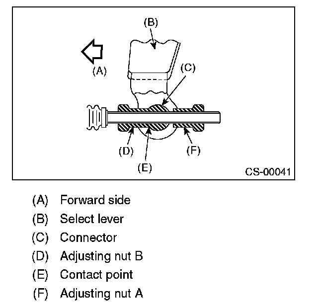 7) After the completion of adjustment, confirm that the select lever operates normally at all ranges.