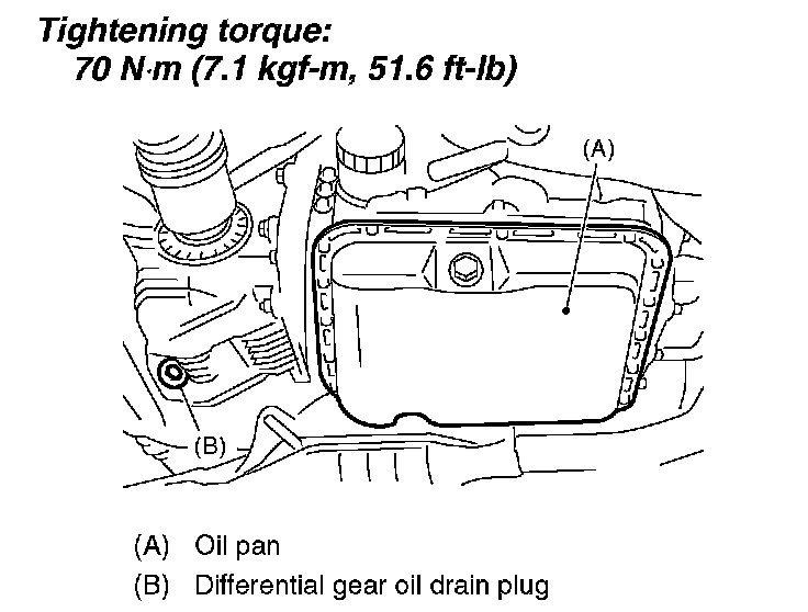 Tightening torque: 70 Nm (7.1 kgf-cm, 51.6 ft. lbs.)