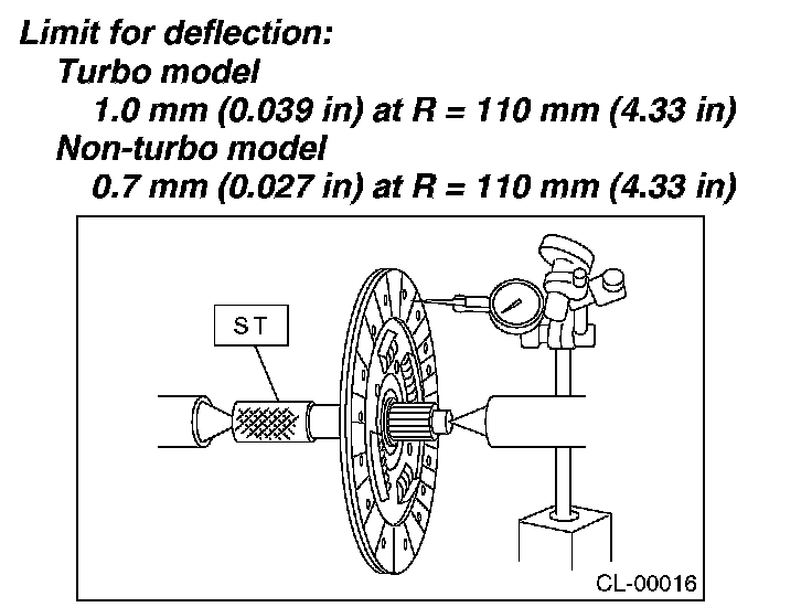 If deflection exceeds the specified value at the outer circumference of the facing, replace the clutch disc.