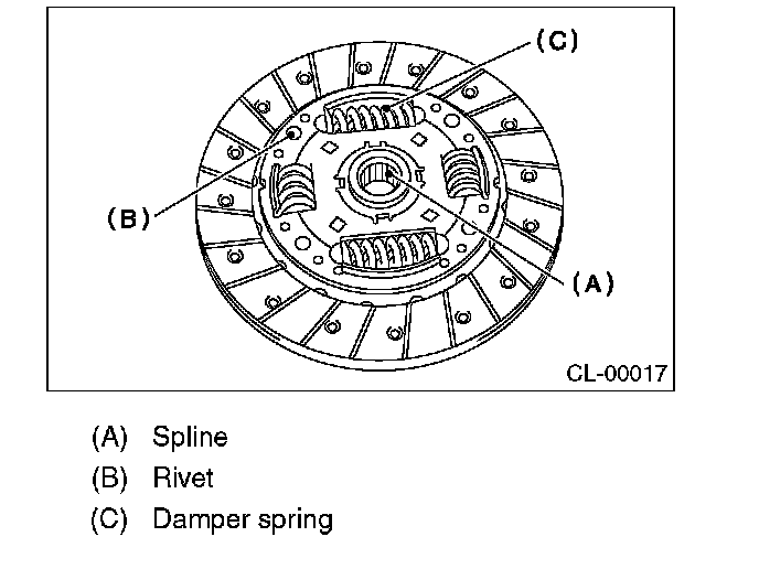5) If there is spline wear, loose rivets, failed damper springs, etc., replace the clutch disc.