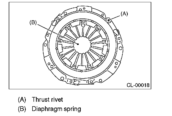 2) Damaged or worn bearing contact area at the center of diaphragm spring