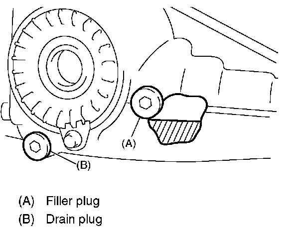 2. Remove the oil drain plug and filler plug, and drain the gear oil.