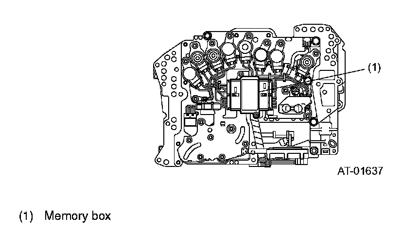 MEMORY BOXThe memory box is mounted on the control valve and stores hydraulic correction values and learned values for the initial shifting pressures for each solenoid, based on its hydraulic characteristics at the time delivered from the factory. The TCM acquires data from this memory box and performs correction based on these data to control each solenoid. This ensures high quality shifting from the time the vehicle was delivered from the factory.