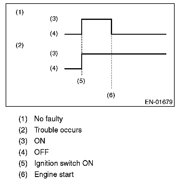 2. After the engine starts, malfunction indicator light blinks in a cycle of 0.5 Hz. (During diagnosis)