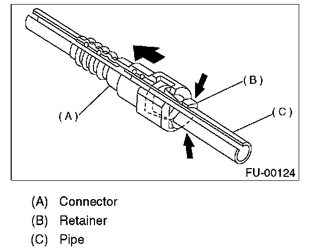 1. Set the new retainer (B) to connector (A).