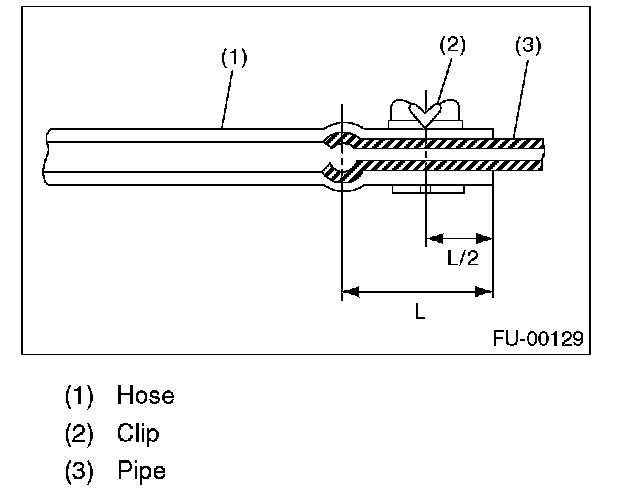 2. Connect the fuel delivery hose and return hose to the pipe with an overlap of 20 to 25 mm (0.79 to 0.98 in).