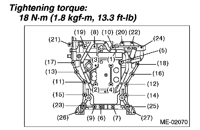 18 N-m (1.8 kgf-m, 13.3 ft. lbs.)