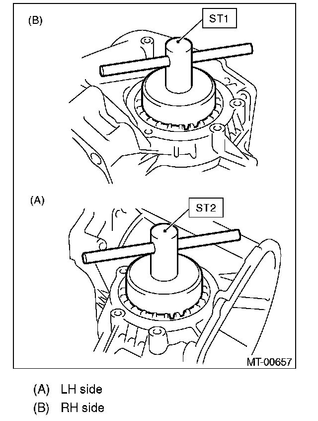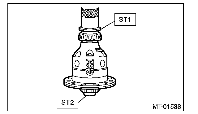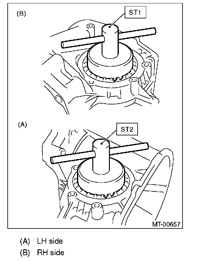 7) Use the ST to attach bearing inner laces of differential cases RH and LH.