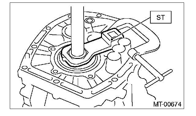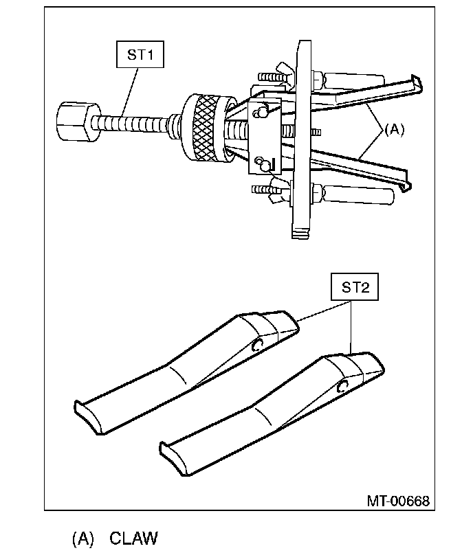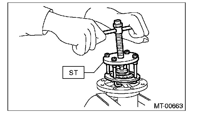 2) Remove the side bearing of the hypoid driven gear using the ST.