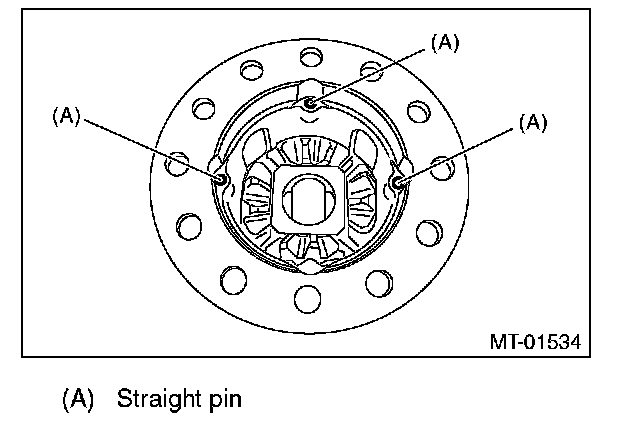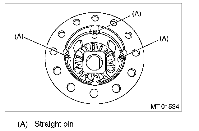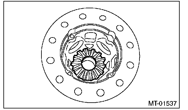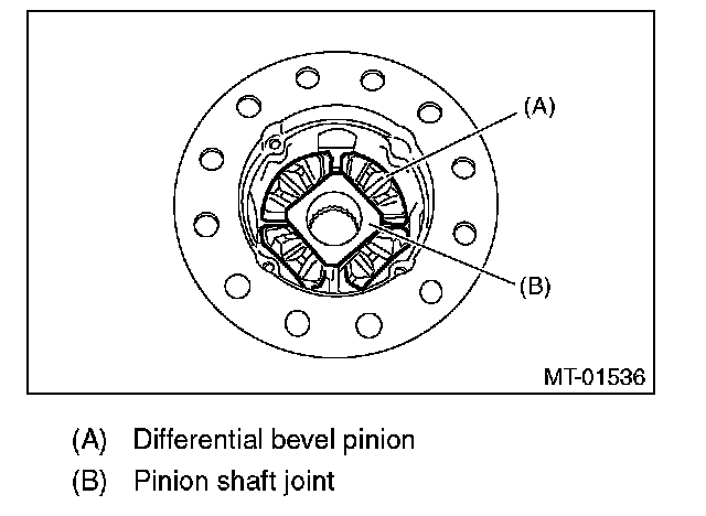 ^ It is recommended that backlash be measured by 2 people. One person should push the differential bevel gear upward (differential case LH side), and the other person measure the backlash.
