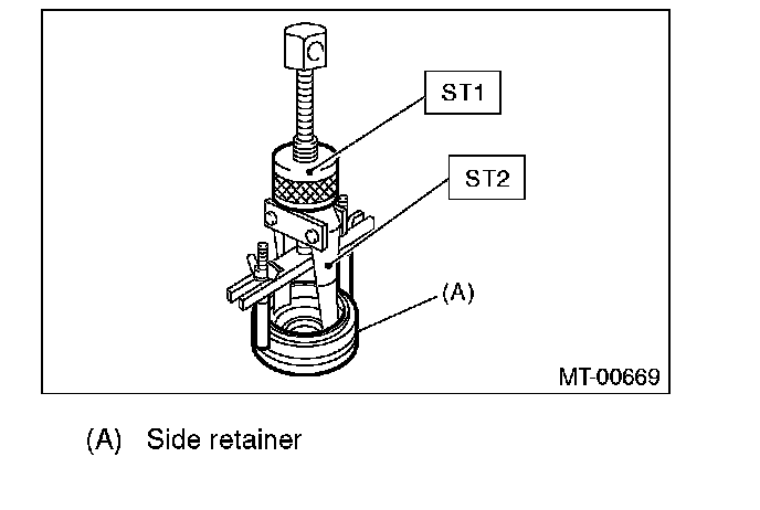 4) Remove the bearing outer race from the side retainer, using the ST.