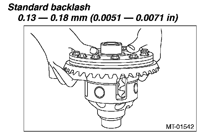 CAUTION: When measuring the backlash, hold the differential assembly in upright position.