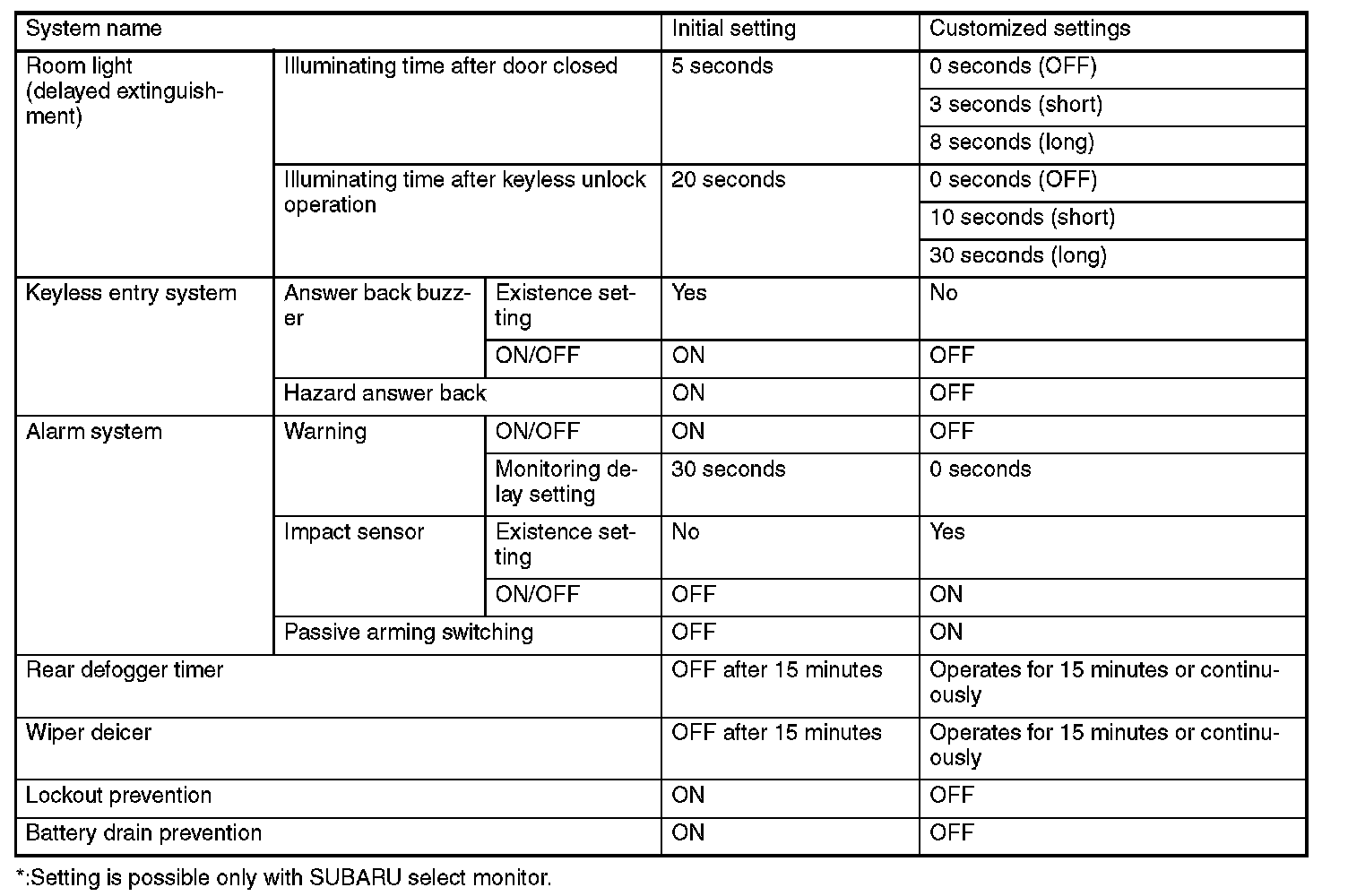 The system can be customized by using a SUBARU select monitor.