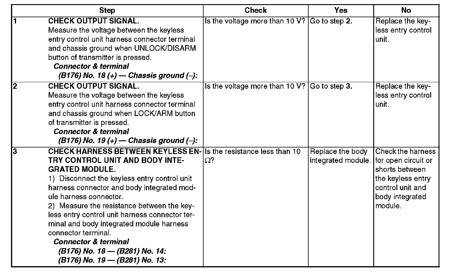 Check Output Signal to Body Integrated Module
