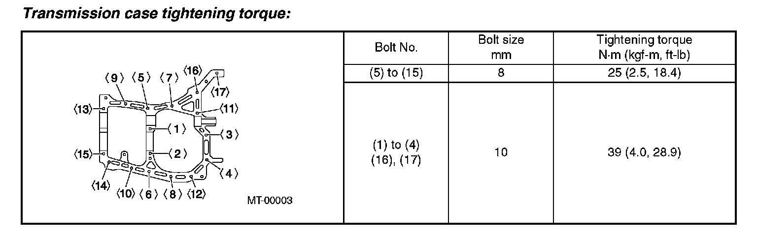Transmission case tightening torque: