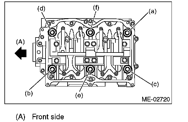 NOTE: Leave bolts (a) and (d) engaged by three or four threads to prevent the cylinder head from falling.