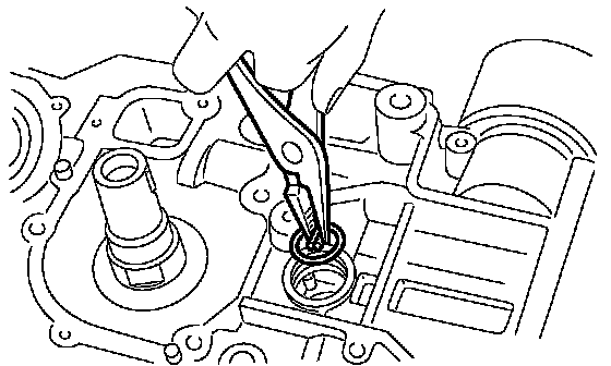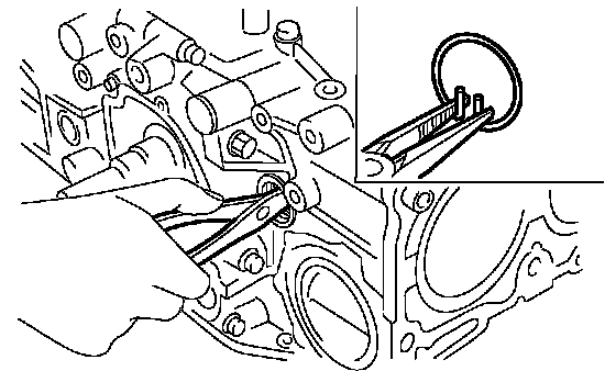 21. Remove the oil pump from cylinder block. Use a flat tip screwdriver when removing the oil pump.
