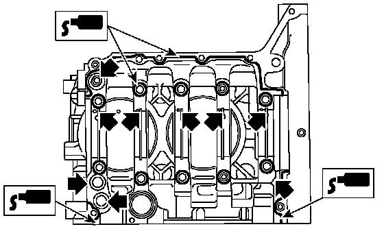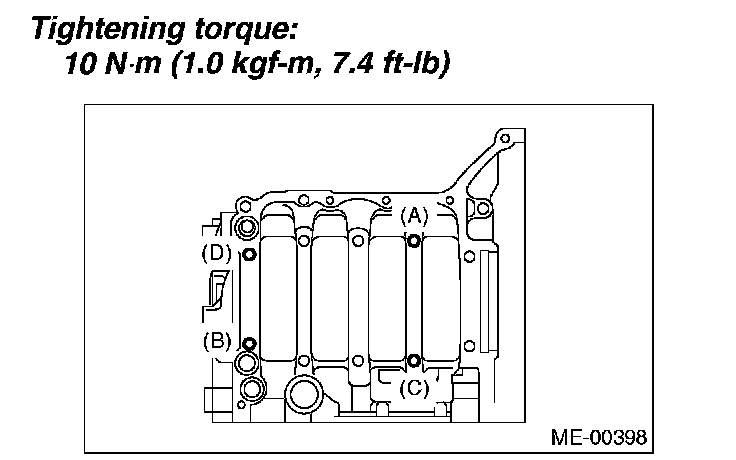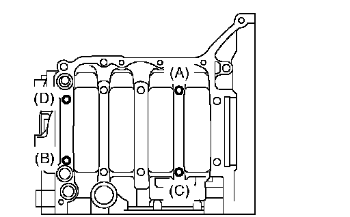 4. Tighten the 10 mm cylinder block connecting bolts on LH side (A - D) in alphabetical sequence.