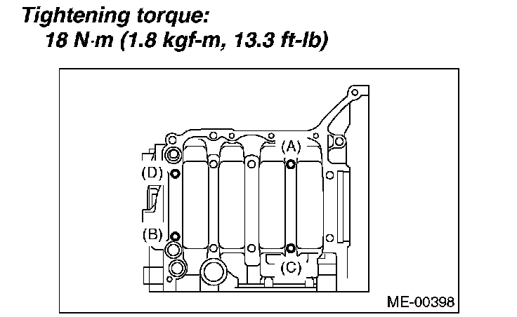 Tightening torque: 18 Nm (1.8 kgf-m, 13.3 ft. lbs.)