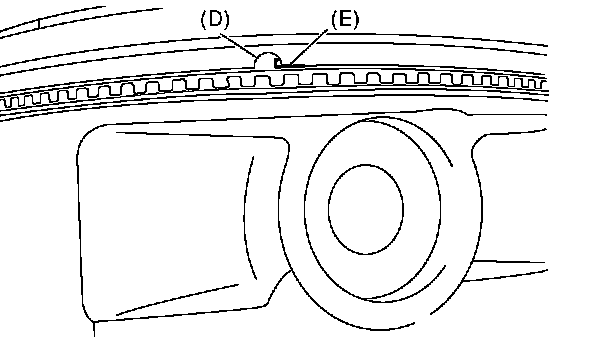15. Align upper rail spin stopper (E) with piston side surface hole (D).