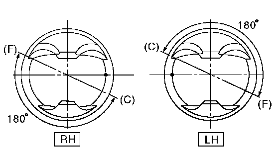 16. Position the expander gap on the opposite side position (F) 180° away from upper rail gap position (c).