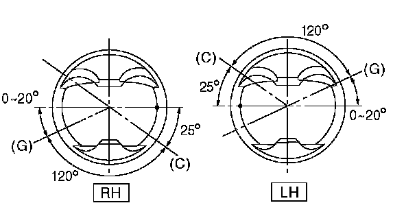 17. Position the lower rail gap on the position (G) 120° away from upper rail gap position (c).