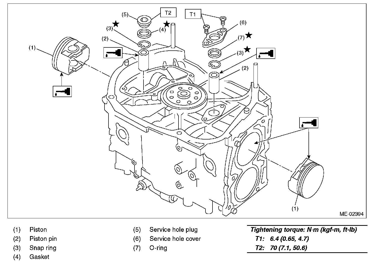 T: 6.4 Nm (0.65 kgf-m, 4.7 ft. lbs.)