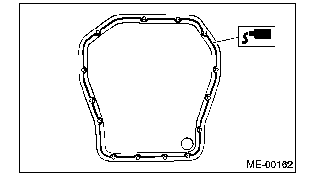 25. Apply liquid gasket to mating surfaces and install the oil pan.