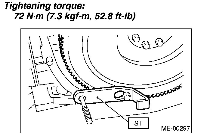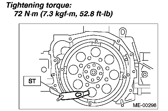 Tightening torque: 72 Nm (7.3 kgf-m, 52.8 ft. lbs.)
