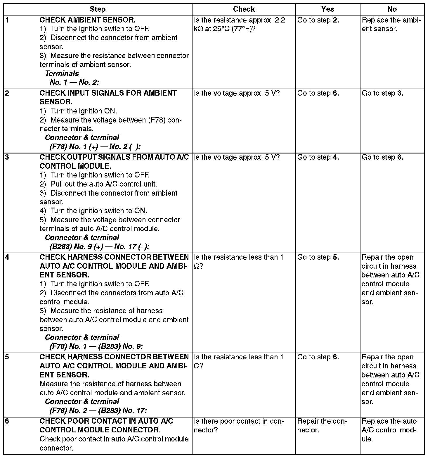 Ambient Temperature Sensor / Switch HVAC: Testing and Inspection