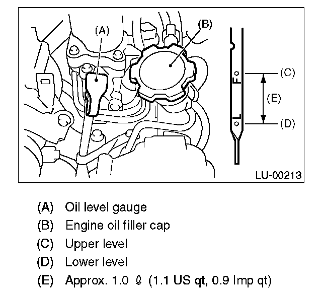 3. Just after driving or while the engine is warm, engine oil level may show in the range between the "F line and notch mark. This is caused by thermal expansion of the engine oil.