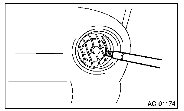 11. Turn the ignition key to ON position, and run the blower at high speed for 1 minute. Stop the blower to check the ventilation grille on the instrument panel. While moving the tester closer to the grille, run the blower for 1 or 2 seconds, then stop it. Check the grille at that point for at least 10 seconds.