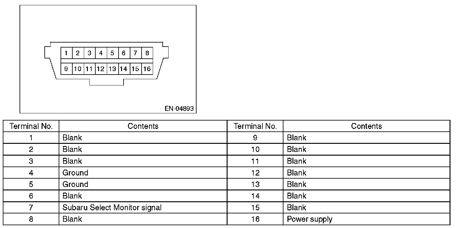 NOTE This connector is used both for general scan tools and the Subaru Select Monitor.