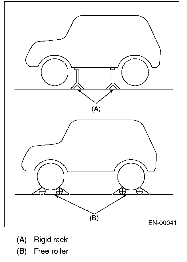 2. Lift up the vehicle using a garage jack and place it on rigid racks, or drive the vehicle onto free rollers.
