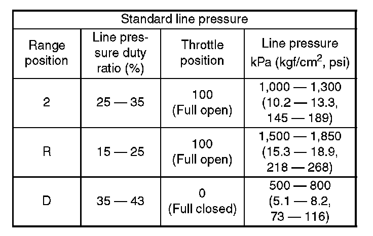 1) Line pressure measurement (under no load)