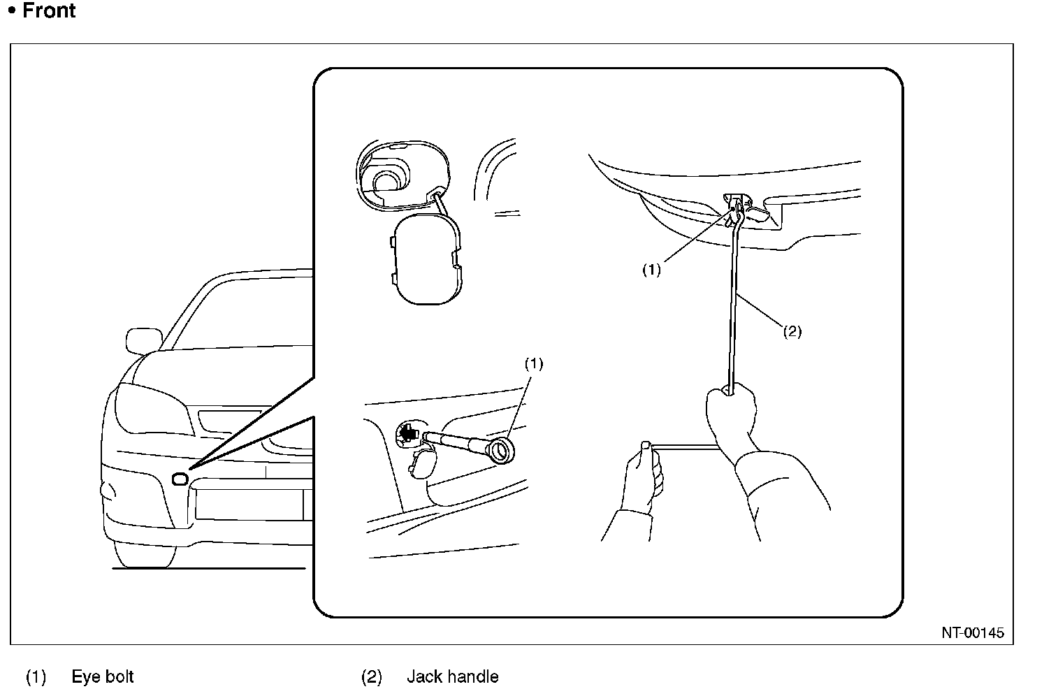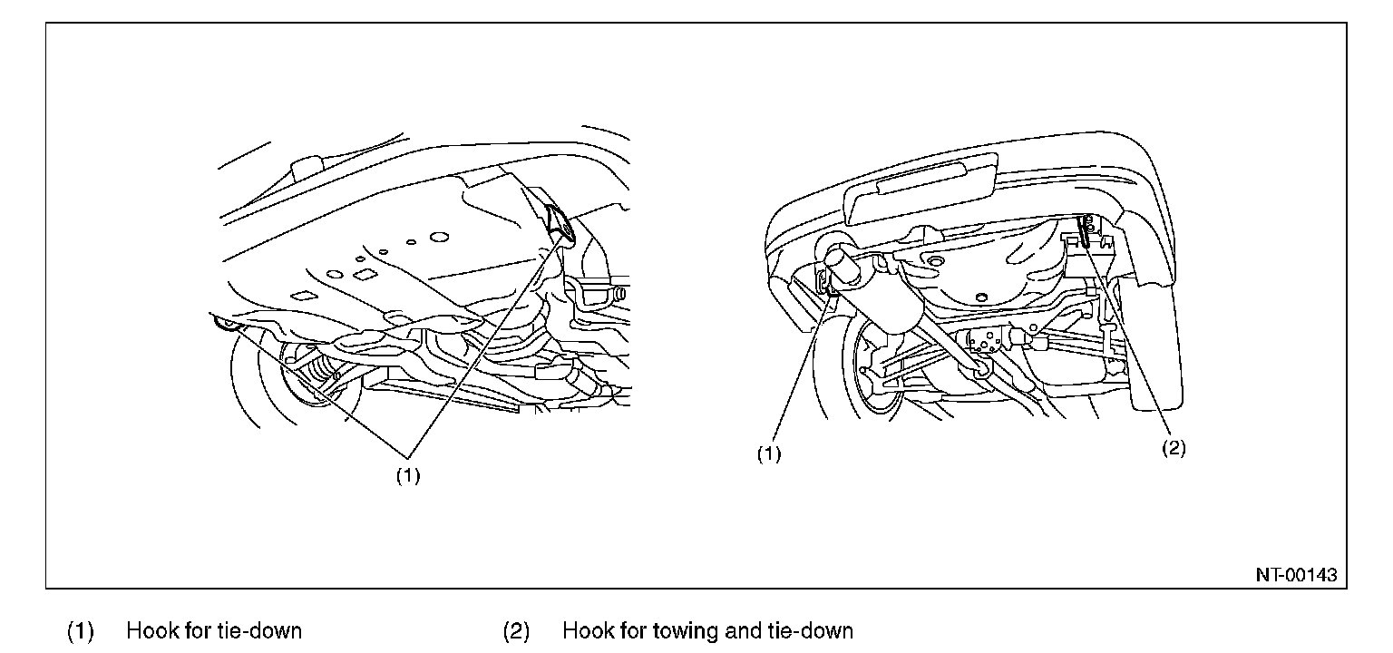 - Do not tow other vehicles with a front hook for tie down.