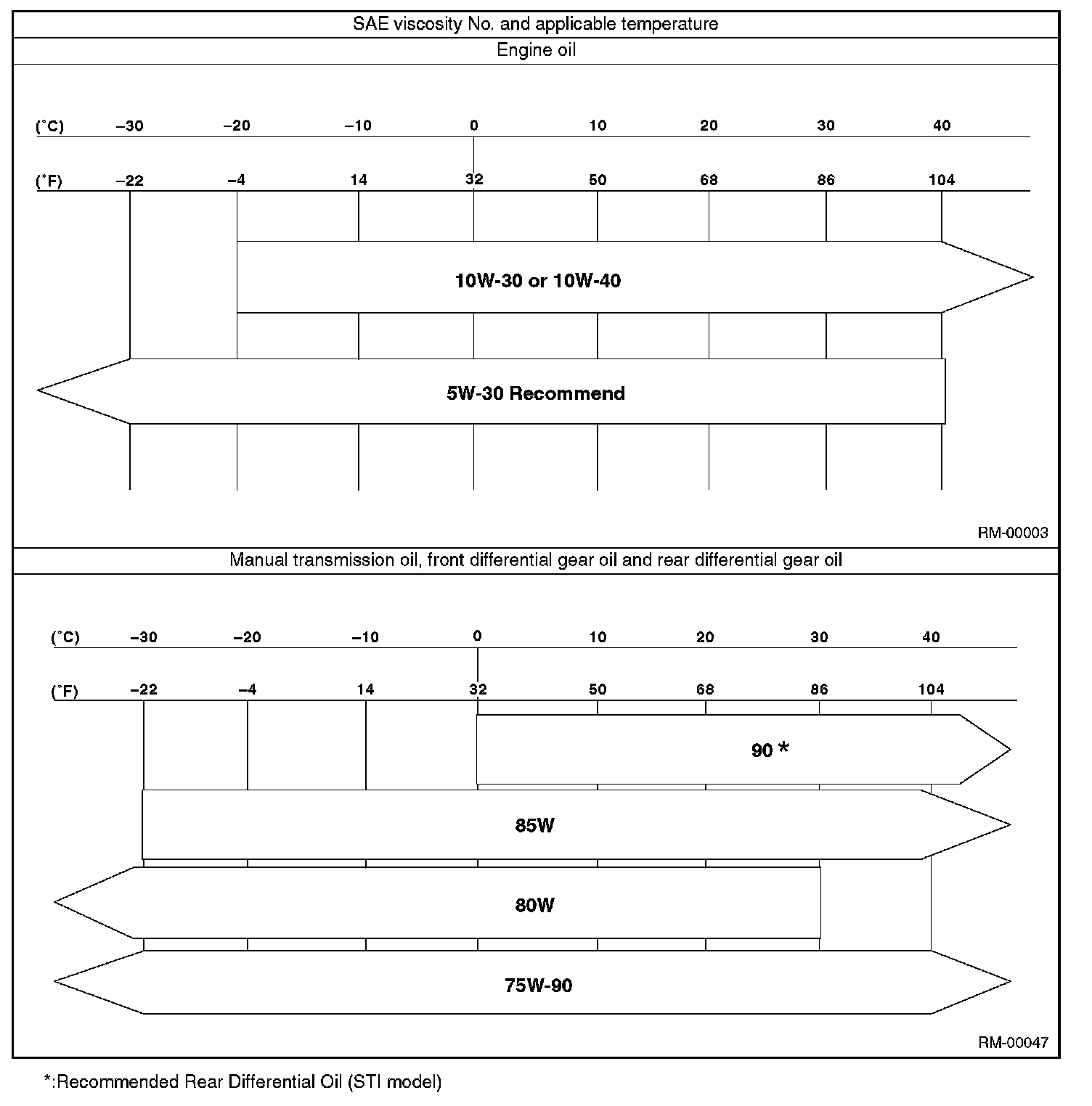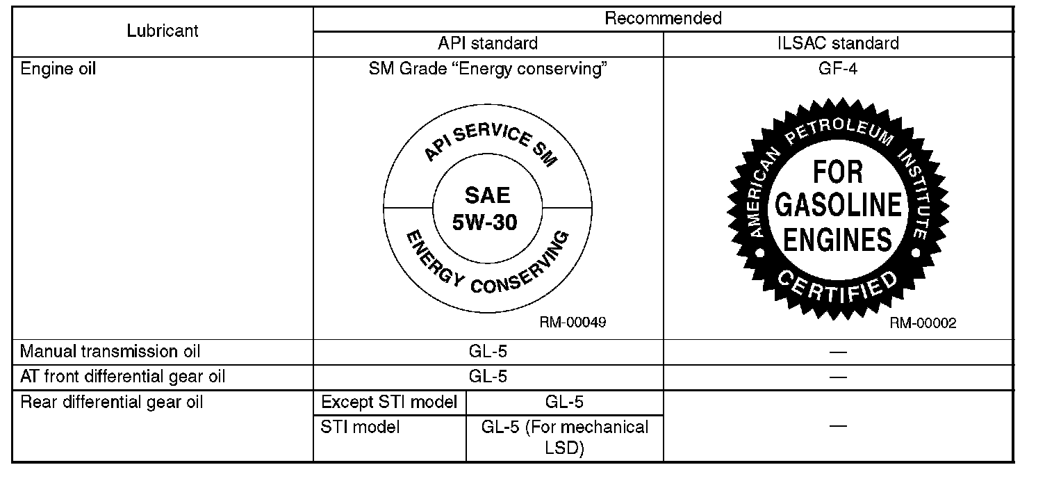 Use either the lubricants in the table or equivalent lubricants. See the table to choose the correct SAE viscosity.