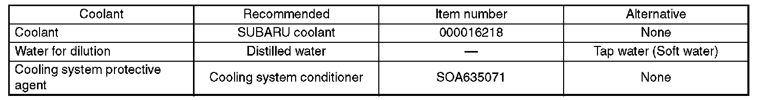 Use the coolant specified in the table to protect the engine.