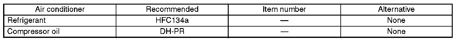 Standard air conditioners on Subaru vehicles use HFC134a refrigerant. Do not mix it with other refrigerants. Also, do not use any compressor oil except for DH-PR.