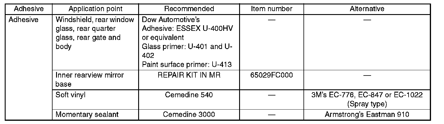 Use the adhesives shown in the table, or equivalent.