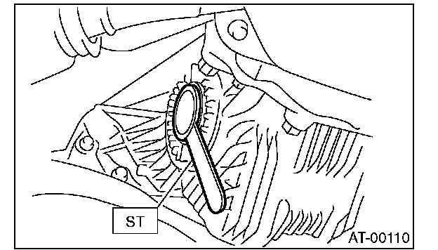 20) Align the spline of front differential shaft to that of differential bevel gear for insertion, and remove them using ST.