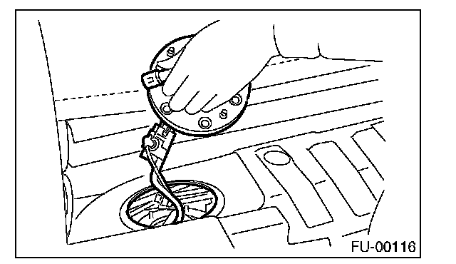 6. Remove the bolts which install fuel sub level sensor on fuel tank.