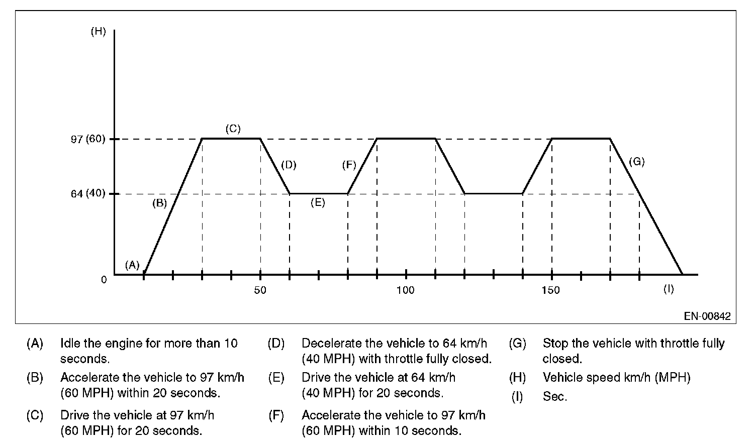 2. DRIVE CYCLE A DRIVE THE VEHICLE WITH 80 KM/H (50 MPH) FOR 20 MINUTES, AND THEN IDLE THE ENGINE FOR A MINUTE.