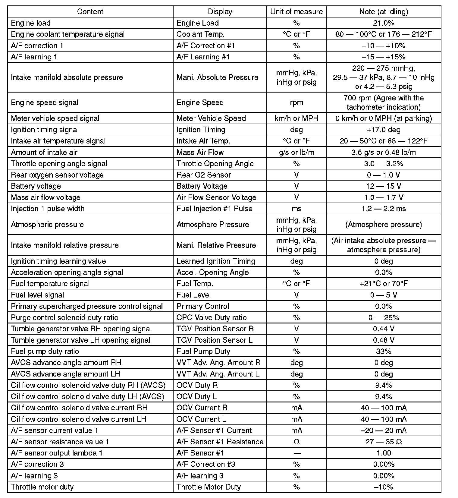 5. READ CURRENT DATA FOR ENGINE (OBD MODE)