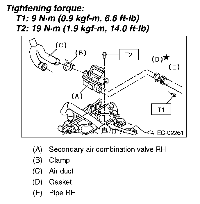 7. Remove the secondary air combination valve RH.