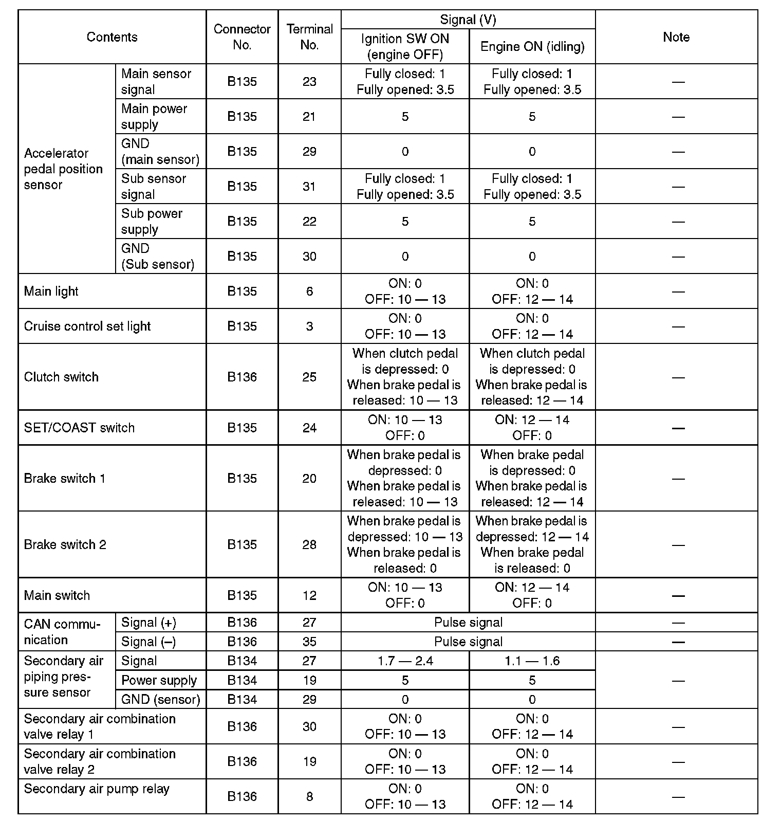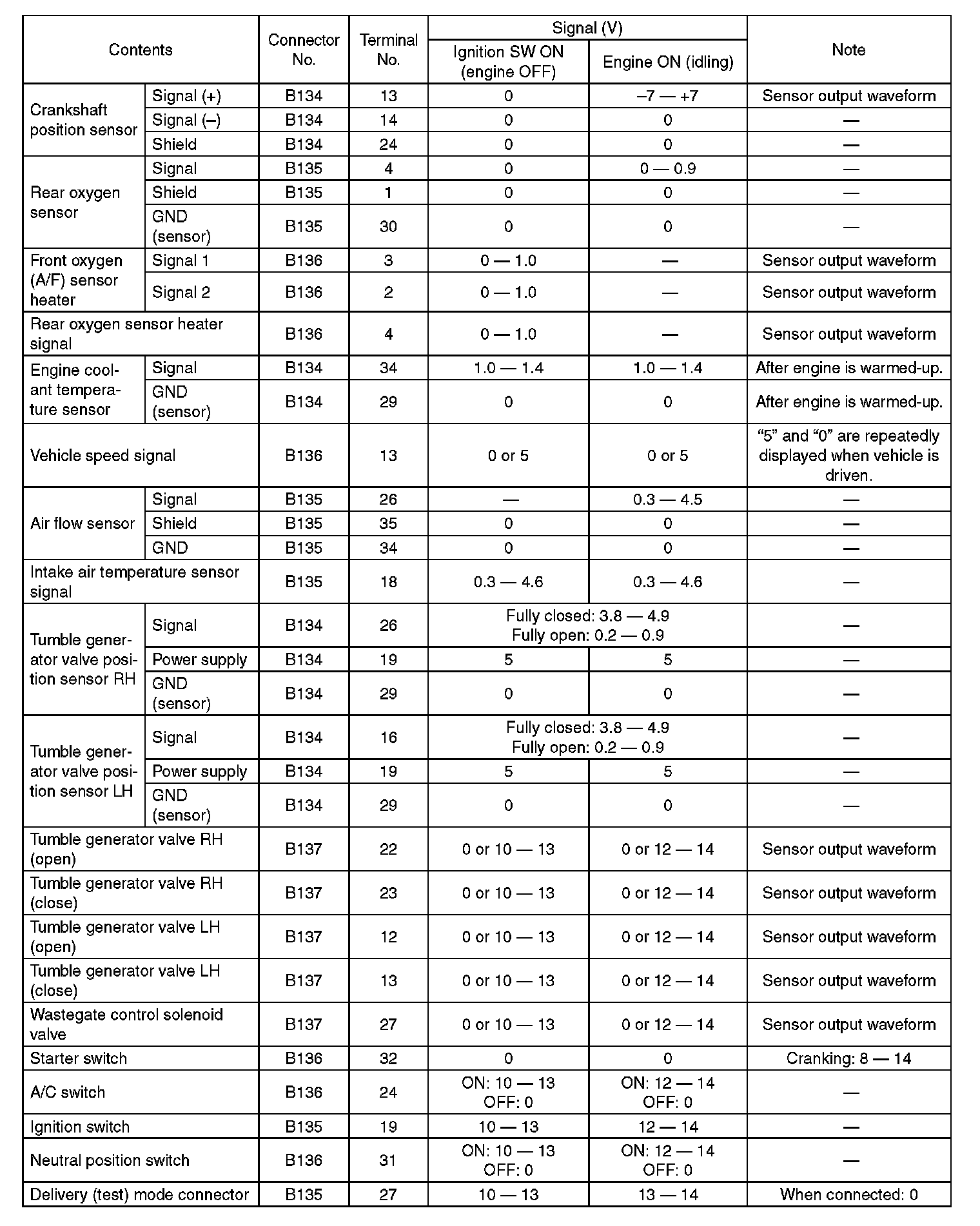 Engine Control Module (ECM) I/O Signal-Electrical Specification (Part 7):