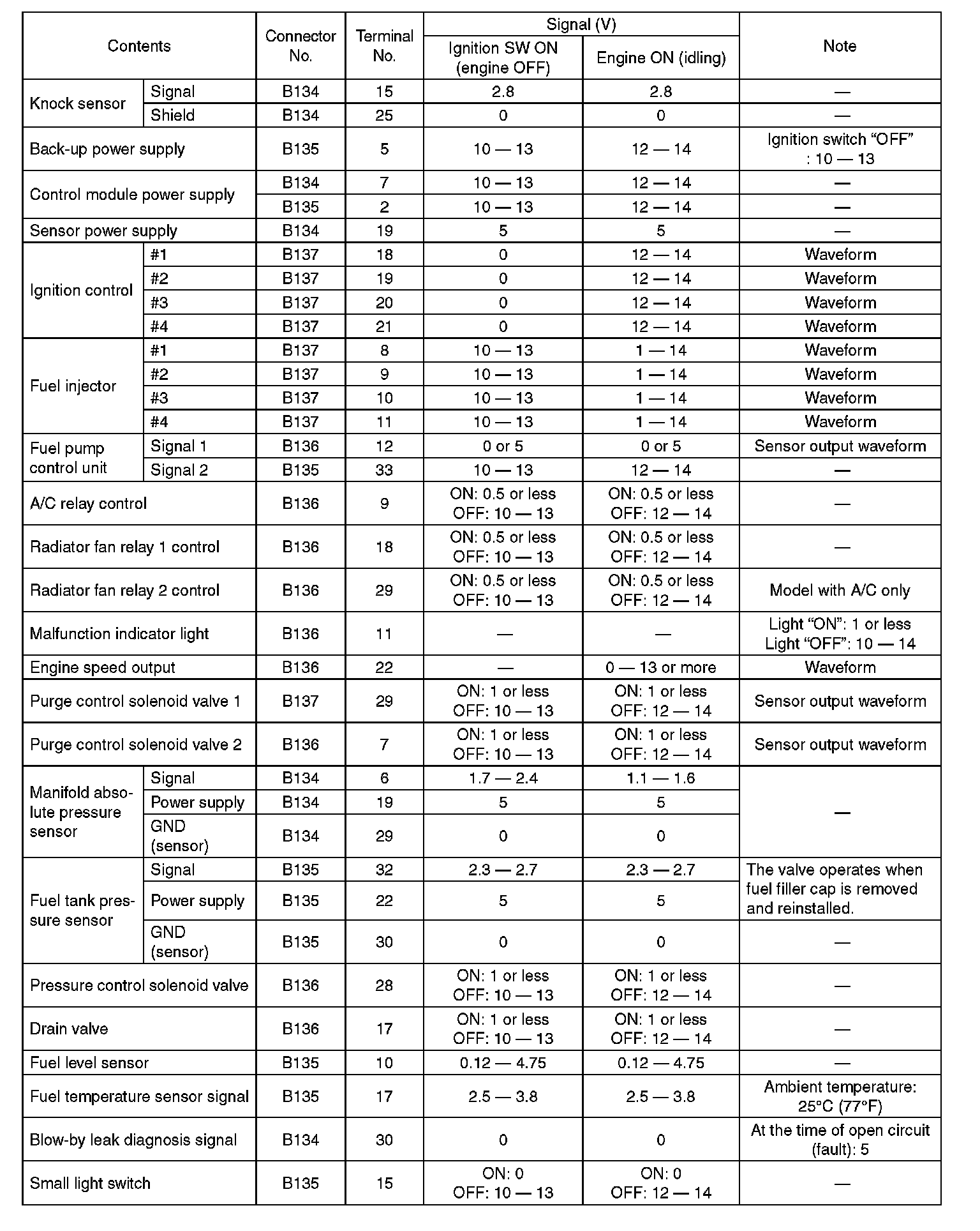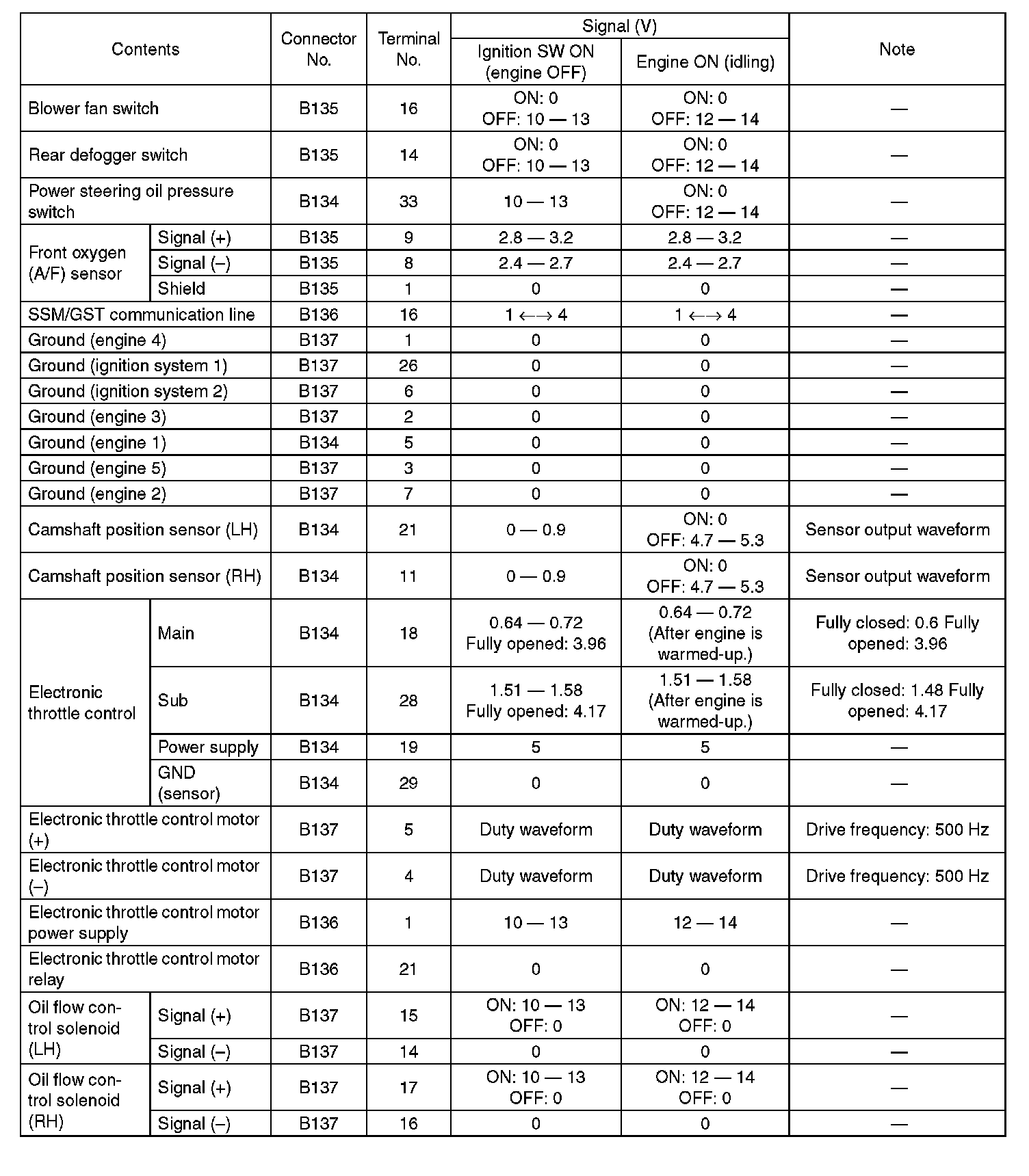 Engine Control Module (ECM) I/O Signal-Electrical Specification (Part 5):