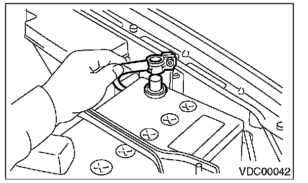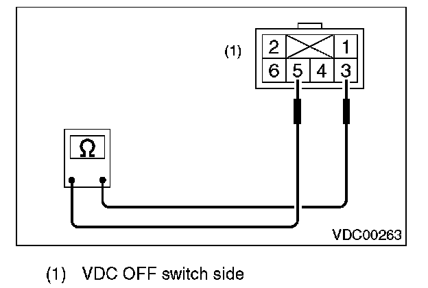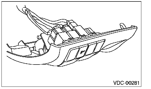 3) Disconnect the VDC OFF switch connector, push outside, and press the VDC OFF switch.