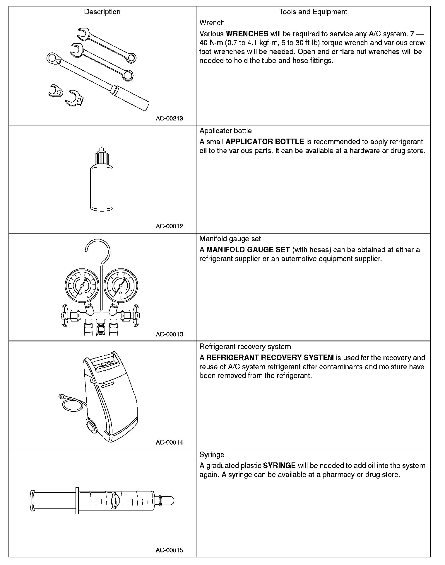 - When working on vehicles with HFC-134a system, only use HFC-134a specified tools and parts. Do not mix with those of CFC-12. If HFC- 134a and CFC-12 refrigerant or compressor oil is mixed, it will result in poor lubrication and the compressor itself may be destroyed.