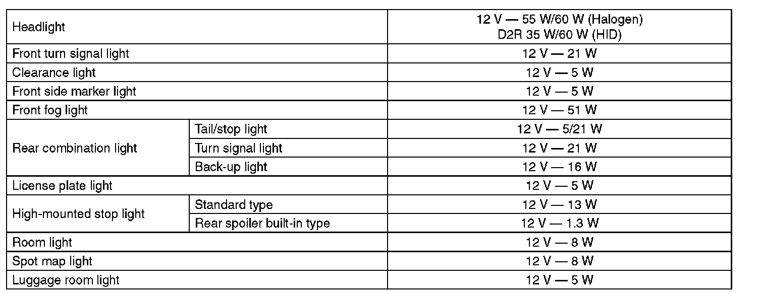 Lighting and Horns: Specifications
